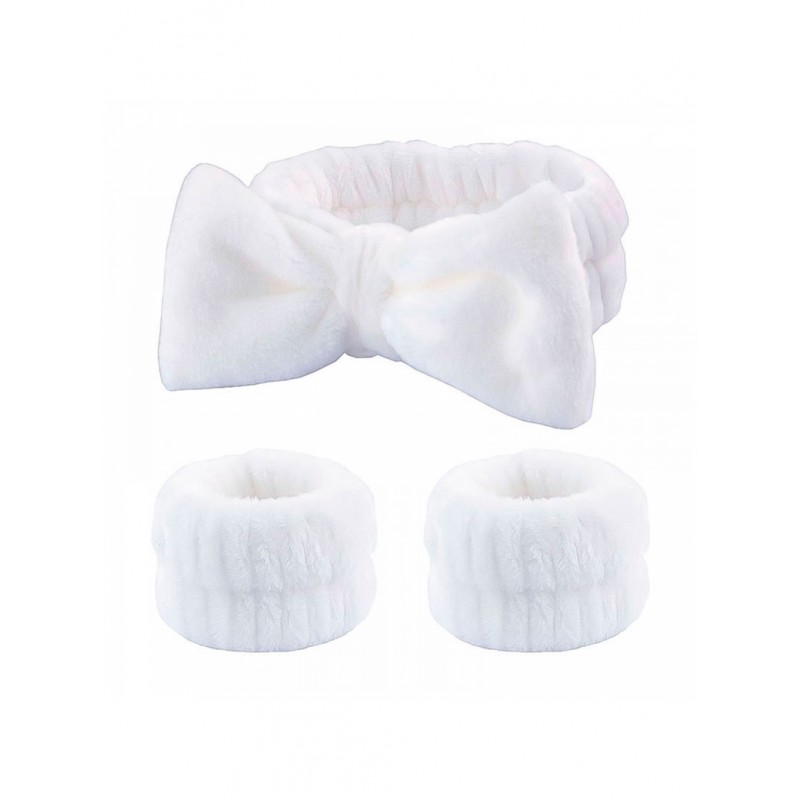 При виконанні різноманітних косметичних процедур буває не дуже зручно, коли заважає волосся. Крім того, волосся можна забруднити, використовуючи маски, креми і т. д. Щоб уникнути цього, ми рекомендуємо використовувати зручний і простий набір - косметична пов'язка "Бантик" та напульсники. Аксесуари запобігають попаданню води на зачіску, а також на руки вище зап'ястя. Пов'язку також зручно використовувати під час масажу, тренування, прийому ванни або походу в сауну.