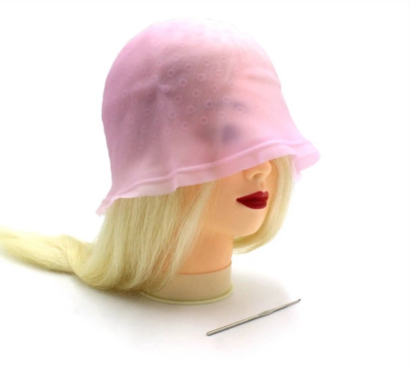 Професійна багаторазова силіконова шапочка для фарбування та мелірування волосся з гачком для колориста рожева
