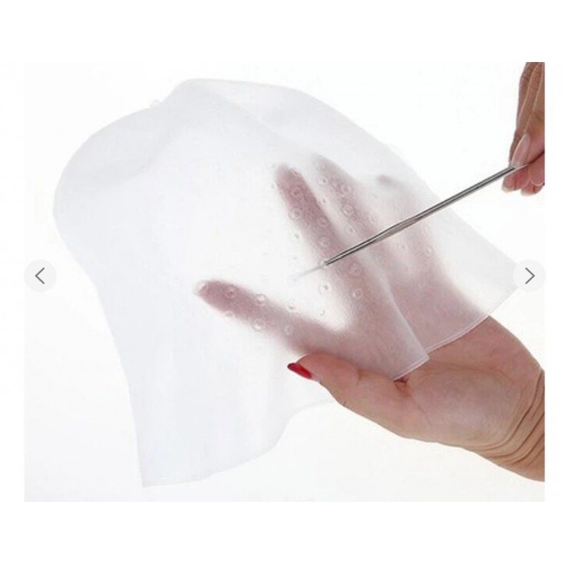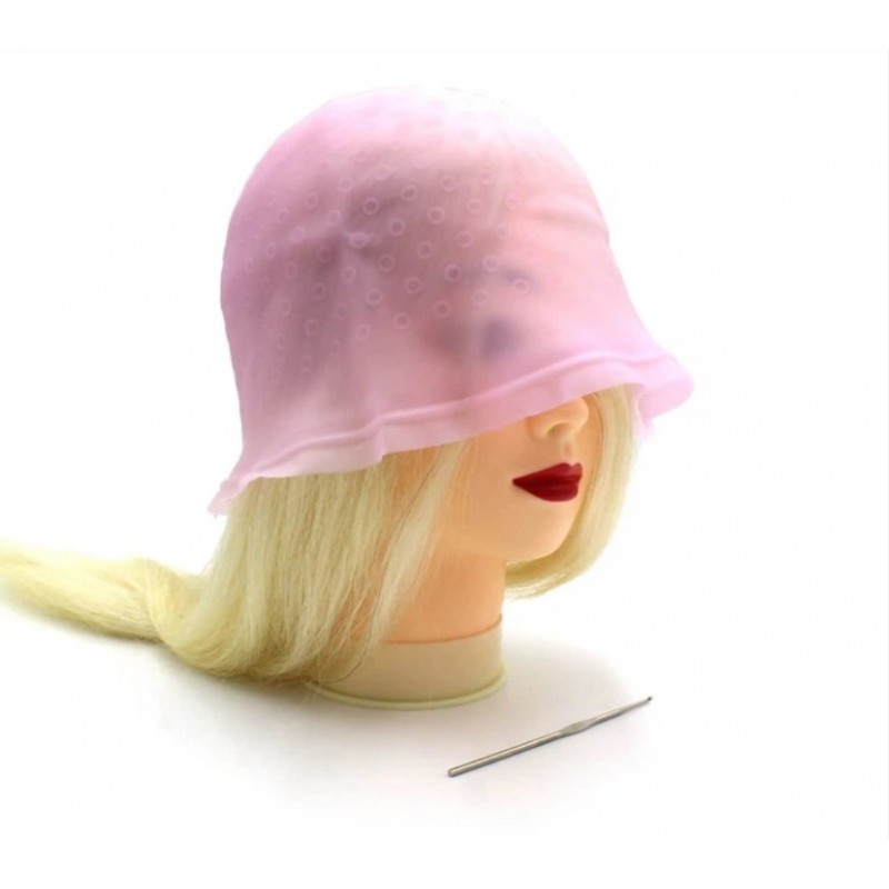 Багаторазова силіконова шапочка – професійний аксесуар майстра-колориста, що дозволяє зробити фарбування та мелірування локонів, використовуючи гачок для витягування та виділення окремих пасм. Аксесуар допомагає уникнути помилок при фарбуванні волосся: розтікання фарби, сплутування фарбованого та незабарвленого пасма. Рекомендується для професійного використання, також може використовуватись і при домашньому фарбуванні.