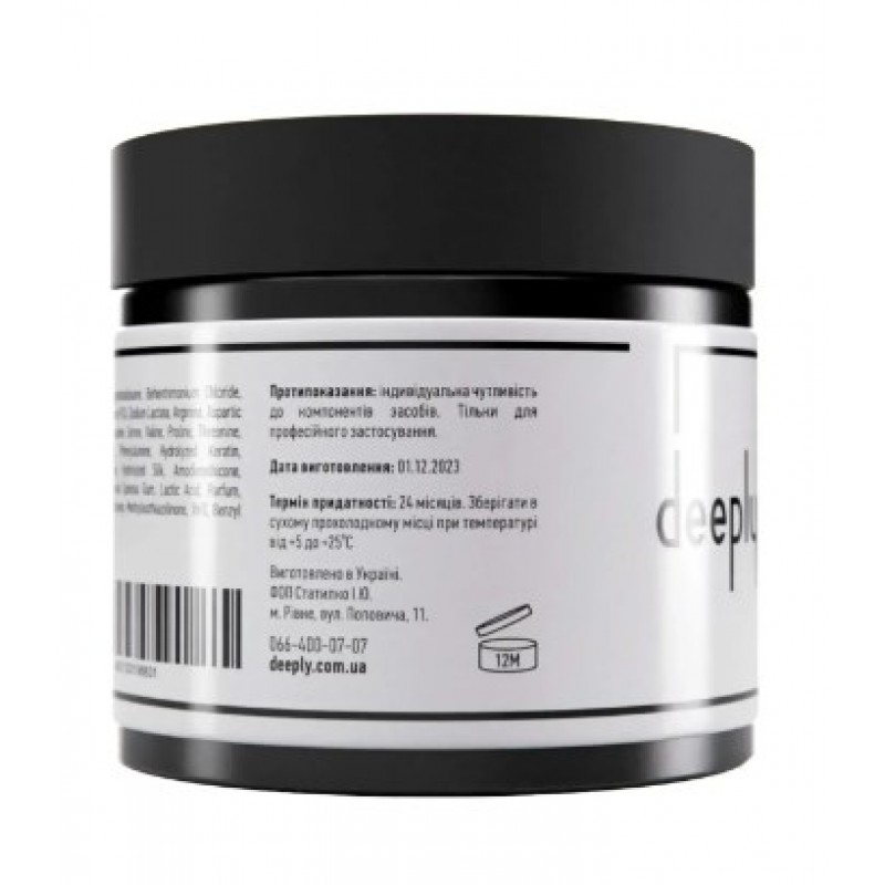 Амінокислотна маска-підкладка deeply amino basic mask - це амінокислотний реконструктор, який зменшує ступінь пошкодження волосся і використовується як самостійне холодне відновлення або як підкладка під гарячі процедури кератину або ботексу. Змінює структуру волосся на молекулярному рівні, заповнюючи дрібні порожнини в глибині волосся, зменшуючи пористість і підвищуючи міцність. Найпотужніший з серії масок-підкладок deeply basic mask і підходить для сильно пошкодженого волосся, для менших пошкоджень рекомендуємо використовувати deeply lipido basic mask.
