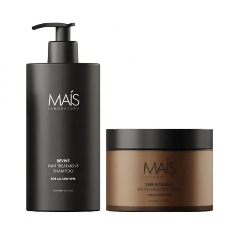 Мінімальна сума замовлення на нашому сайті - 200 грнMais Laboratory Revive & Reconstruct Set — це потужний дует для інтенсивного догляду за ослабленим, пошкодженим або зневодненим волоссям. У набір входять: